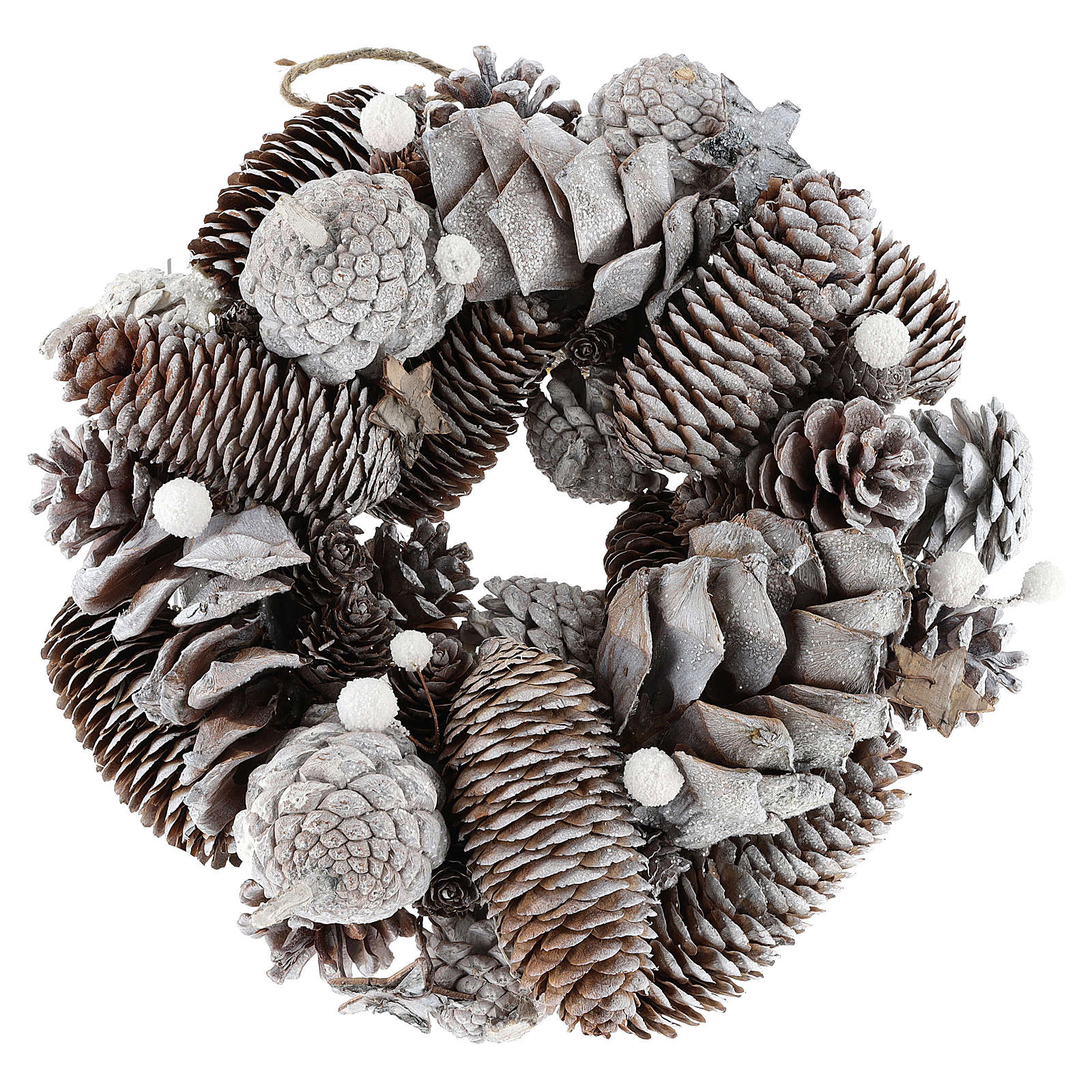 Couronne Noël pommes de pin blanches et glitter