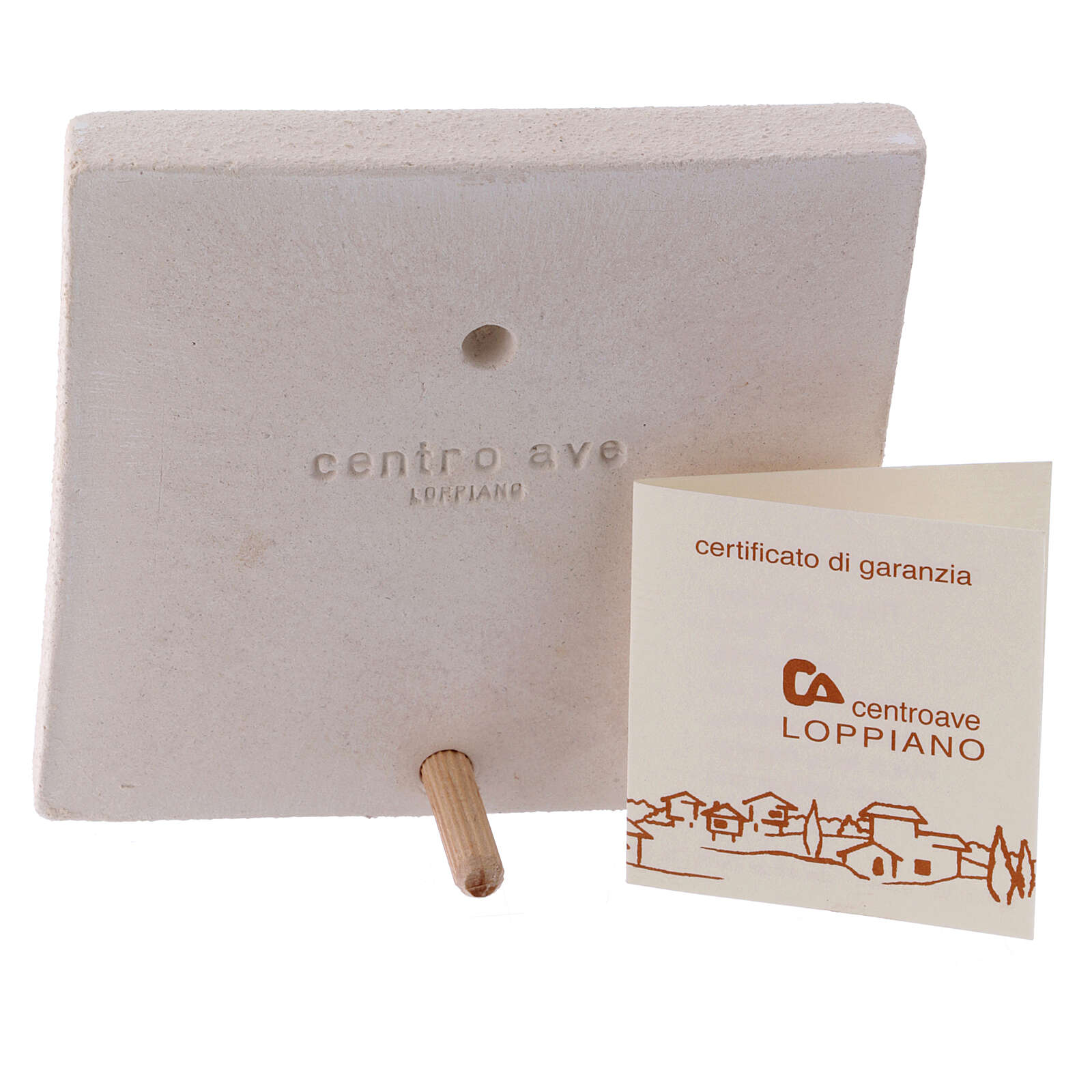 Miniature de Noël Nativité classique en argile 10x10 cm. Cadre avec miniature en argile réfractaire blanche représentant le symbole de la Nativité classique de la Sainte Famille.