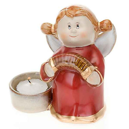 bougeoir ange rouge avec accordéon, la lampe votive est incluse dans la boite