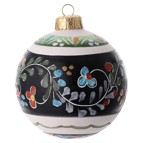 Boule de Noël céramique noire ornements floraux 8 cm Deruta