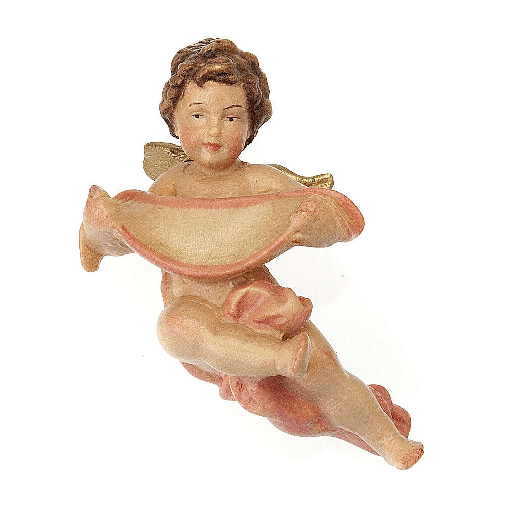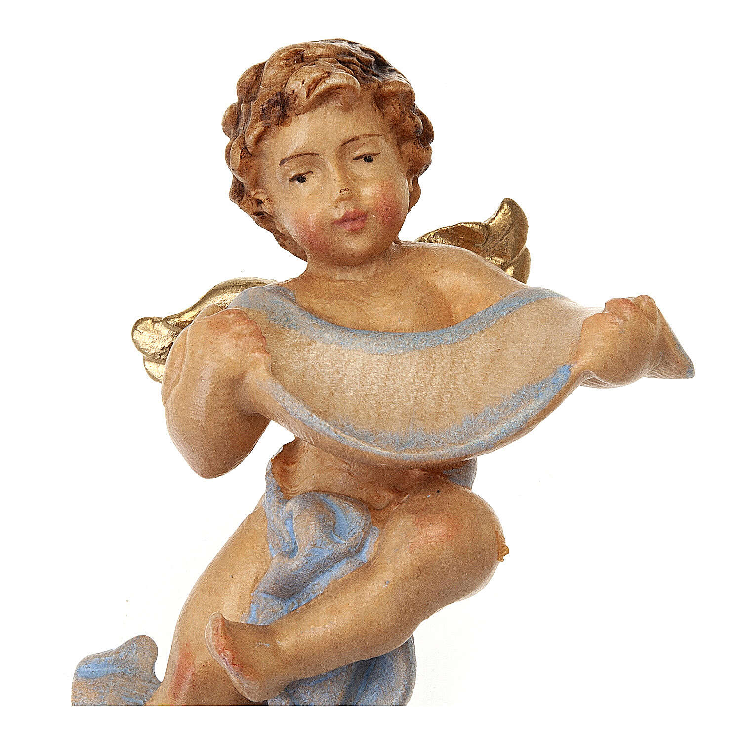Ange avec bougie et veste blanche. Statue peinte à la main idéale à accrocher, en bois d'érable, réalisée par les artisans de la Valgardena. Un papier parchemin aux pieds de l'ange permet d'écrire un mot. Disponible en bleue et rose. Choisissez la mesure que vous souhaitez. Ecrivez le nom que vous voulez sur le papier parchemin.