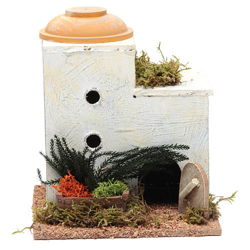 Maison arabe double coupole pour crèche 18x15x15 cm. Maisonnette en style arabe avec toits en coupole pour décor de crèche de Noël produite en Italie.