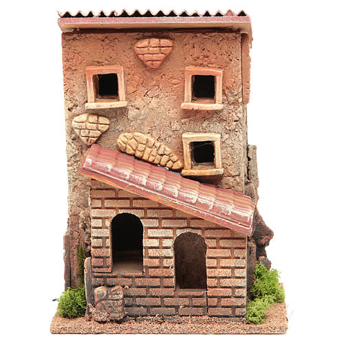 Maison avec escalier crèche 25x18x14 cm pour 6 cm. Décor rustique pour crèche réalisé à la main par des artisans italiens, adapté pour santons de 6 cm.