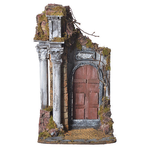 Temple porte marron 20x20x40 cm. Décor pour crèche de Noël en liège et en bois, réalisé par des artisans italiens spécialisés.