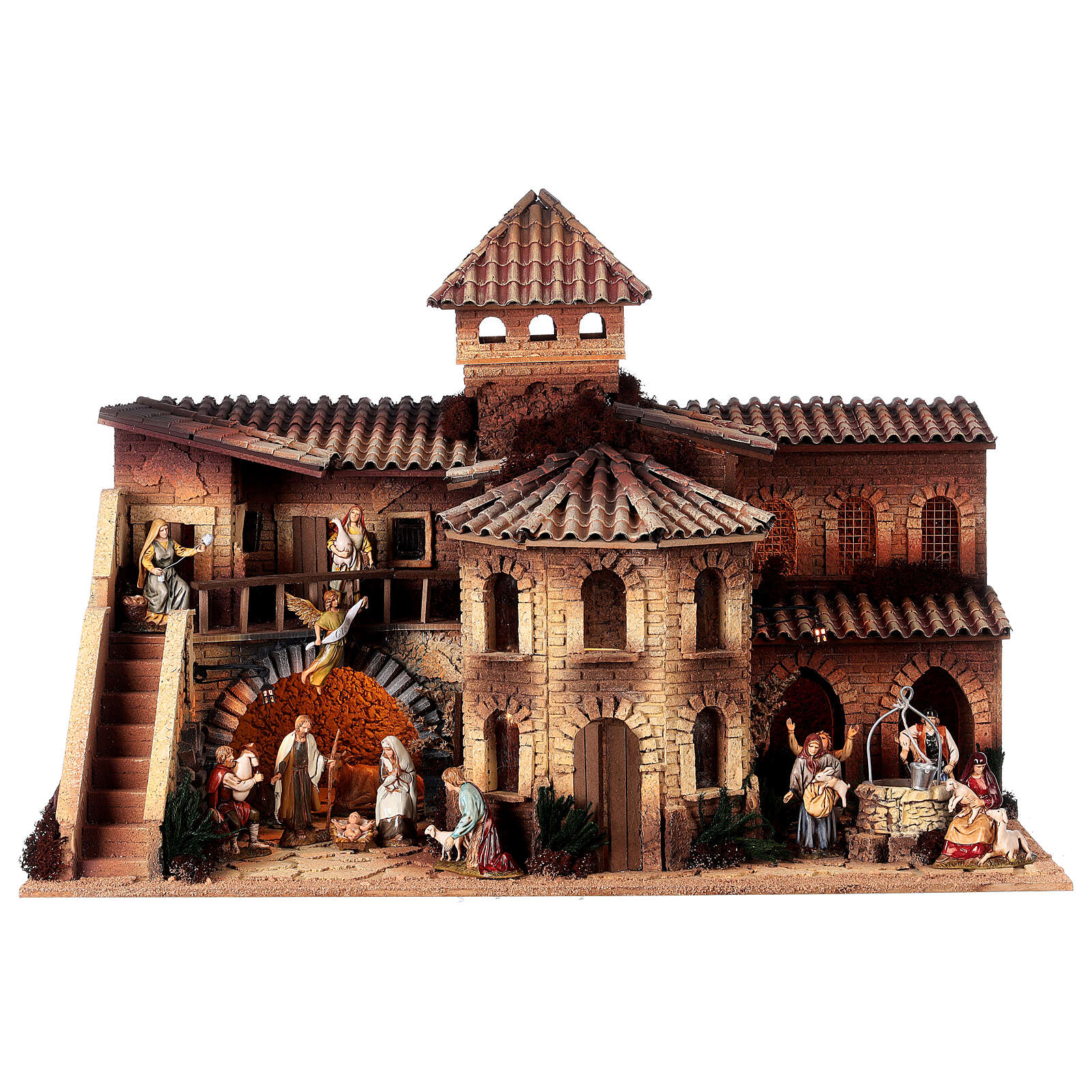Village crèche complet maison octogonale puits santons Moranduzzo 10 cm 50x70x45 cm