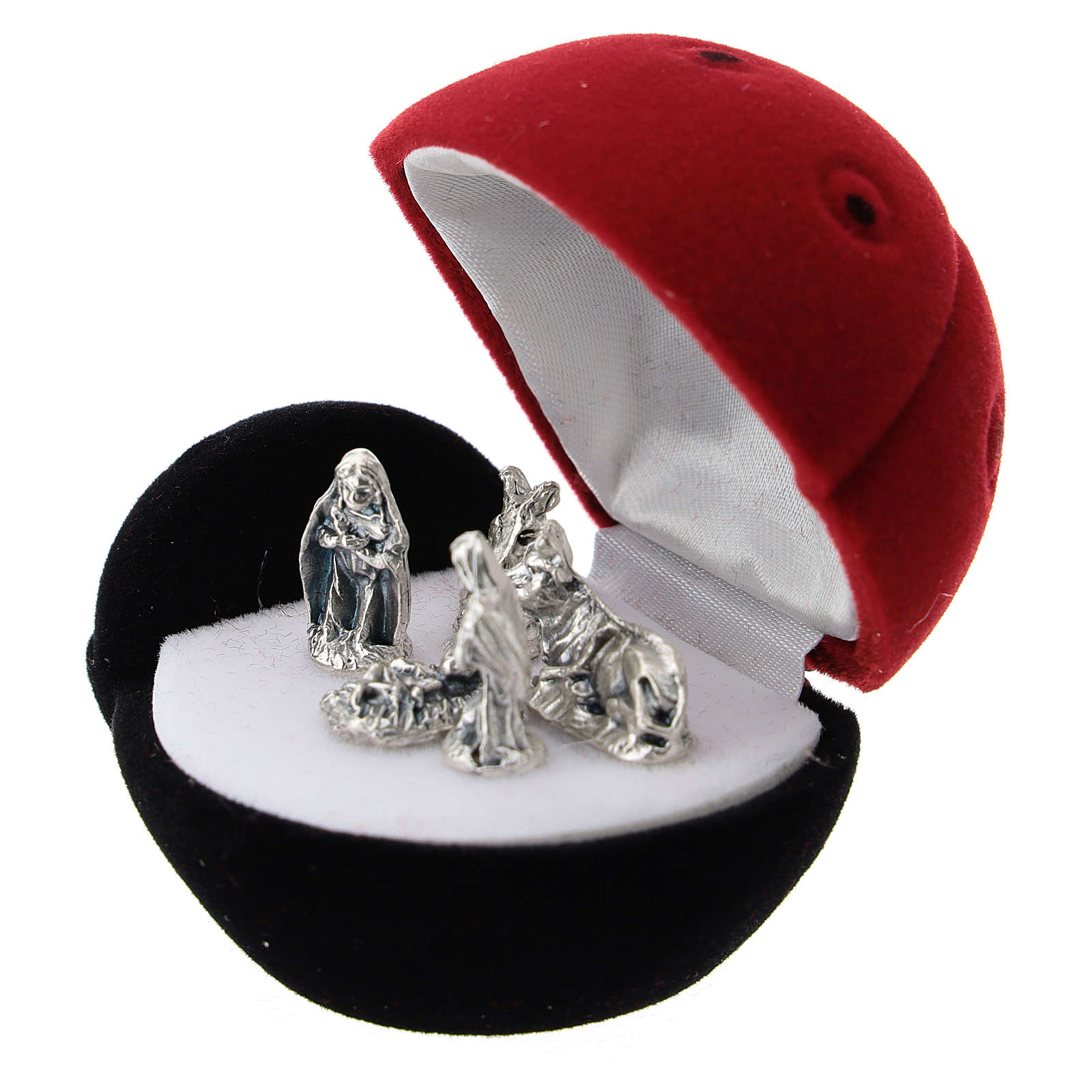 Coffret avec nativité coccinelle velours. Petit coffret en forme de coccinelle en velours avec nativité en miniature à l'intérieur.
