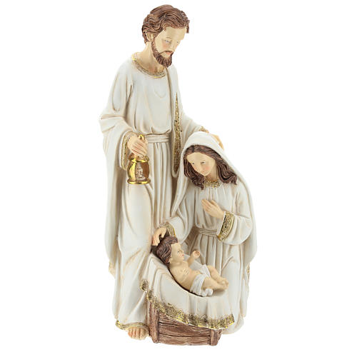 Nativité 2 pcs 40 cm finition ivoire. Scène de la Nativité avec Joseph avec une lanterne en main, la Vierge à genoux et l'Enfant Jésus dans son berceau.