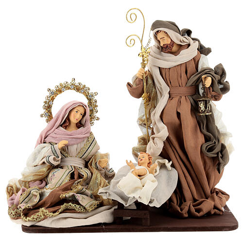 Sainte Famille résine tissu moka et rose 40 cm style vénitien