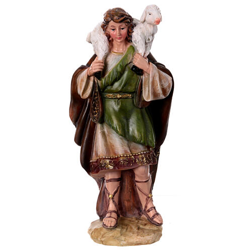 STOCK Berger avec mouton sur épaules pour crèche de 30 cm résine