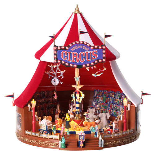 Deux options musicales sont disponibles : les classiques mélodies de cirque, propres aux jongleurs et trapézistes, ou des mélodies de Noël. Alimenté par un transformateur électrique inclus, il est également livré ave...