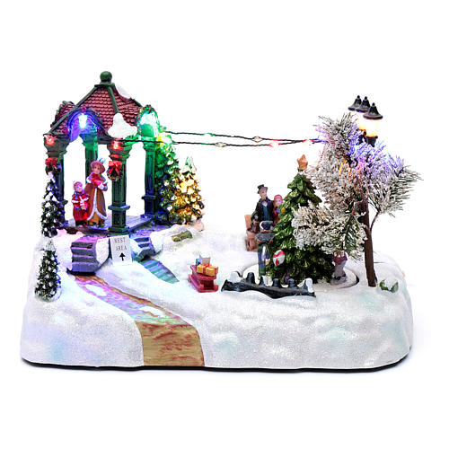 Village animé arbre mouvement lumières led musique Noël 20x25x15 cm