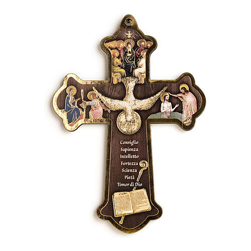 Croix Confirmation impression sur bois Saint-Esprit et Dons.