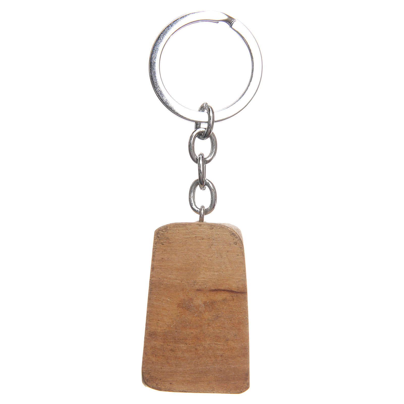 Porte-clé bois olivier Notre-Dame Medjugorje. Porte-clef en bois d'olivier avec image de Notre-Dame de Medjugorje.