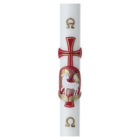 Cierge pascal 90x8 cm avec Agneau de Dieu et croix rouge