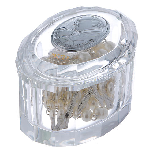 Boîte à chapelet cristal bonbonnière ovale Pape François