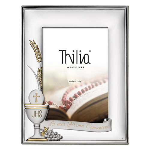 Cadre Thilia en aluminium argenté calice hostie raisin blé Première Communion 25x20 cm.