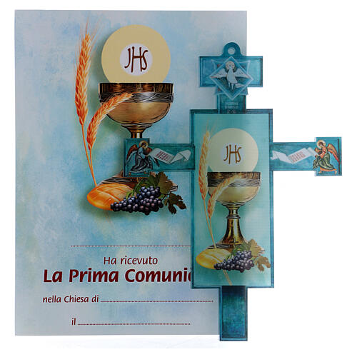 Croix Confirmative traditionnelle avec diplôme symboles eucharistiques.