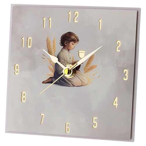 Remerciement Première Communion horloge avec enfant 14x14 cm à pile Made in Italy