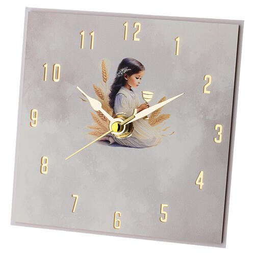 Remerciement Première Communion horloge avec fillette 14x14 cm à pile Made in Italy