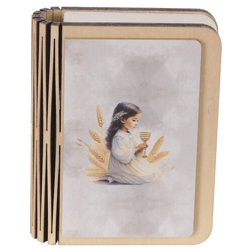 Souvenir en forme de livre LED dédié à la Première Communion, décoré d'une fillette vêtue pour la Première Communion.