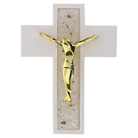 Croix en résine et verre de Murano effet bois blanc 13,5x10 cm