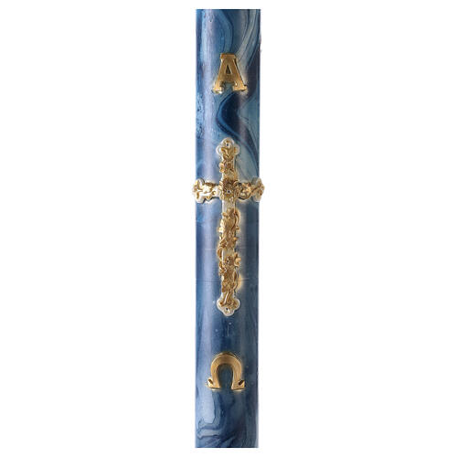 Cierge pascal Alpha Oméga croix dorée fond marbré bleu 120x8 cm