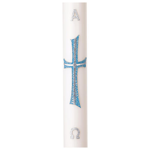 Cierge pascal avec décoration croix en cire argentée et bleue 8X120 cm