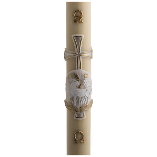Cierge Pascal cire abeilles RENFORT Agneau argent croix 8x120cm