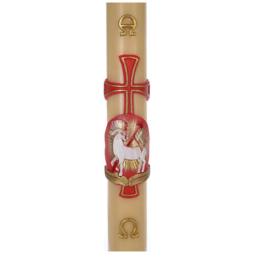 Cierge Pascal cire d'abeille Agneau croix 8x120 cm