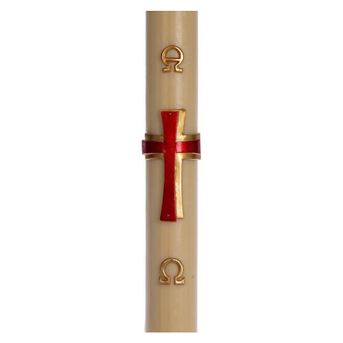 Cierge pascal cire d'abeille Croix relief rouge 8x120 cm