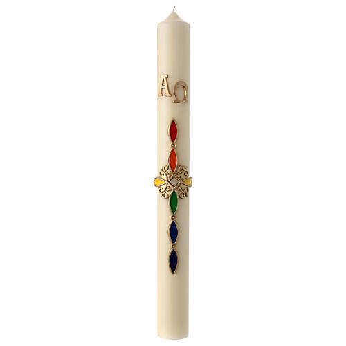 Cierge pascal croix arc-en-ciel or 80x8 cm cire d'abeille