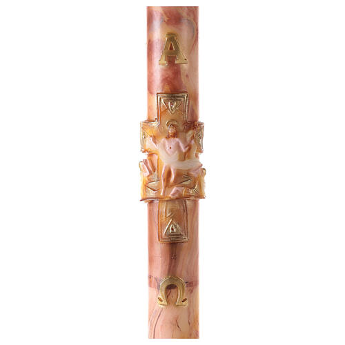 Cierge pascal croix Christ Ressuscité effet marbre rose 120x8 cm