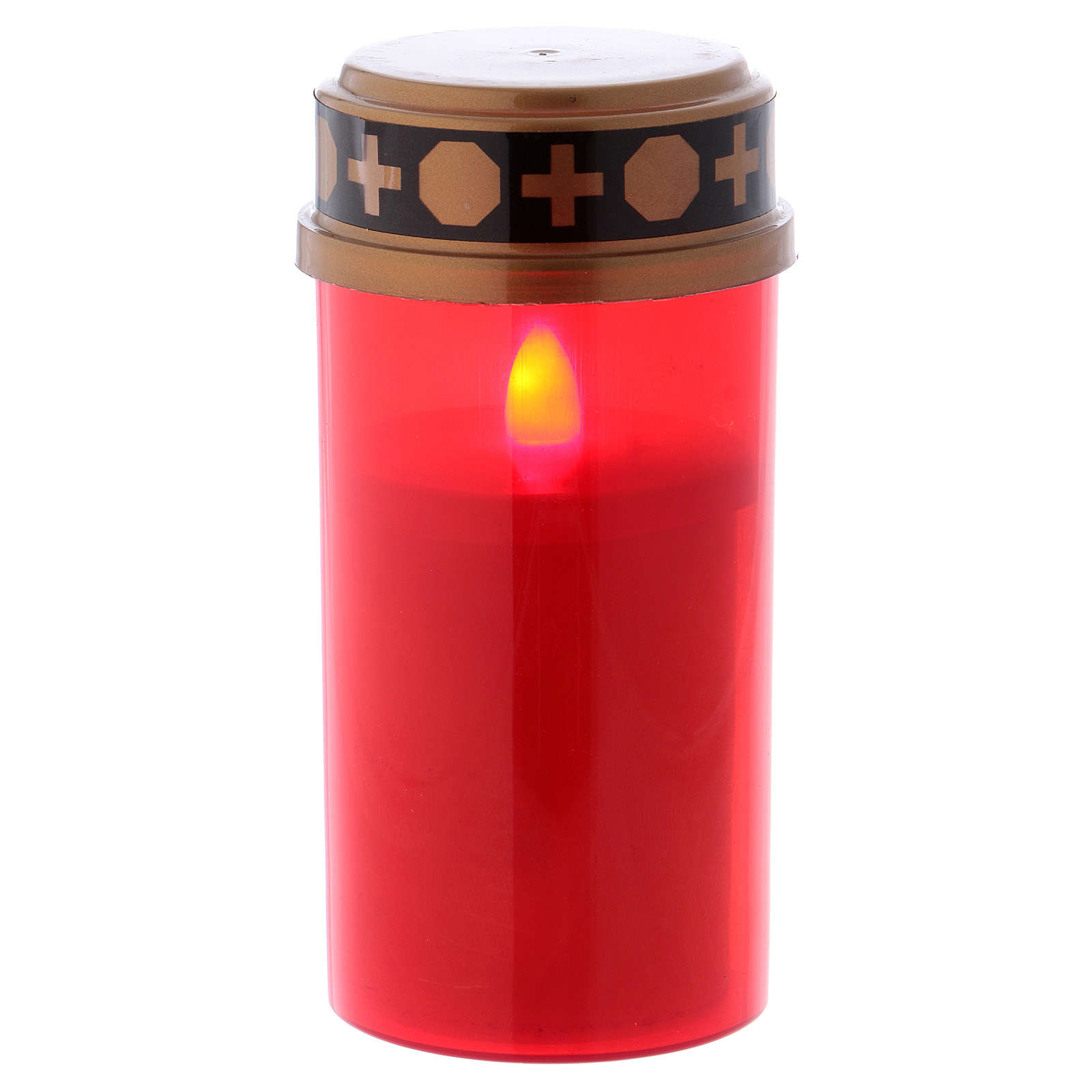 Veilleuse votive Led rouge éclairage tremblant. Veilleuse votive Led de couleur rouge avec lumière tremblante effet flamme, d'une durée de 30 jours, alimentée par 2 piles AA incluses.